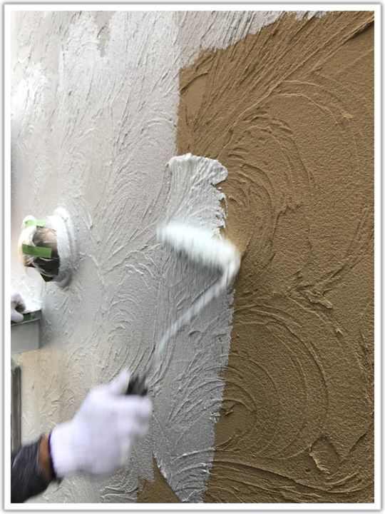 全体の塗装とあわせて基礎部をモルタル刷毛引きで仕上げます