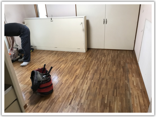 一見、床のどこが悪くなっているのか見分けがつきませんが、ある箇所だけが踏み抜きそうなくらい沈み危ない状態です。
