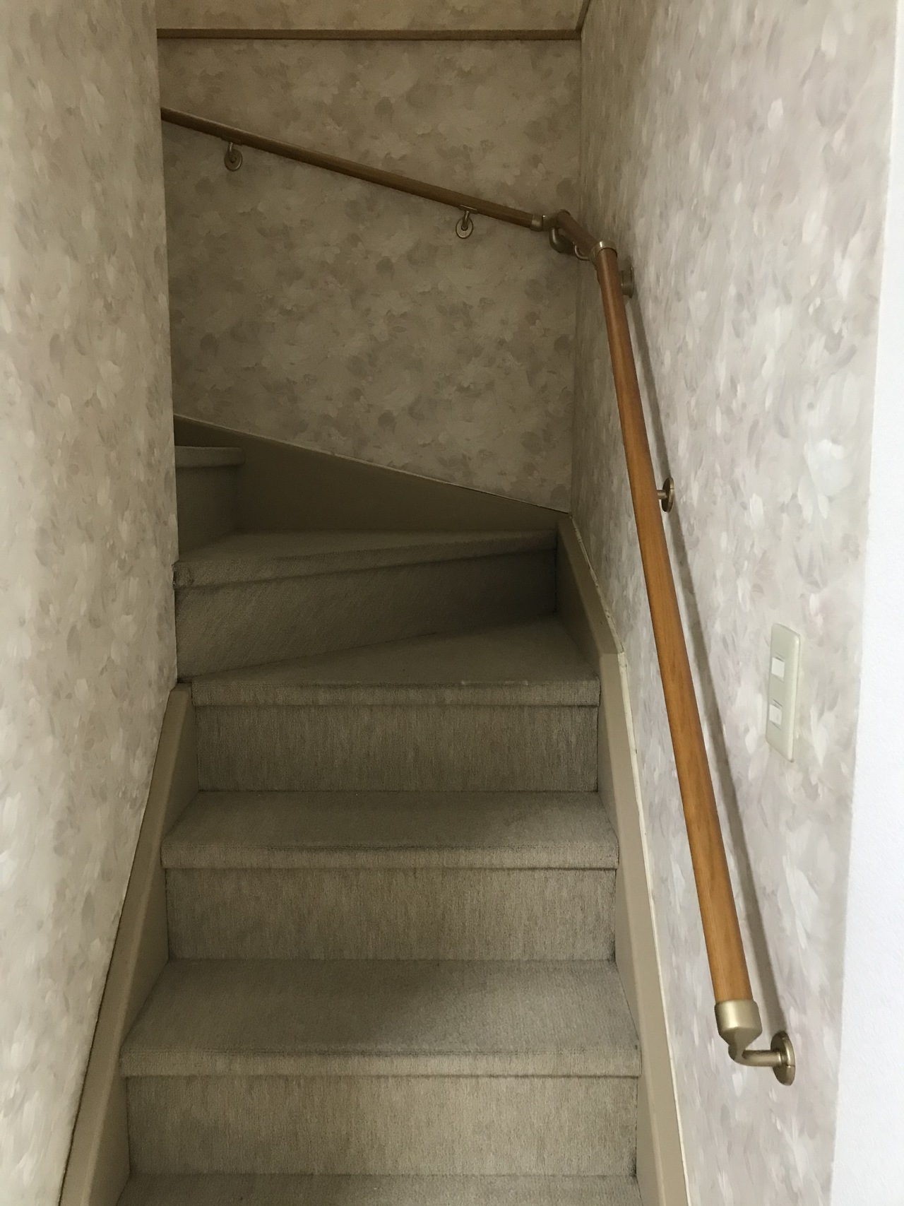 階段に手摺りを設置しました。また、間仕切りのなかった地下室をアコーディオンカーテンで間仕切りし、3つの空間に分けるリフォームを行いました。