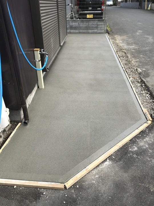 道路境界のブロック塀を撤去、敷地内は土間コン仕上げにしました。