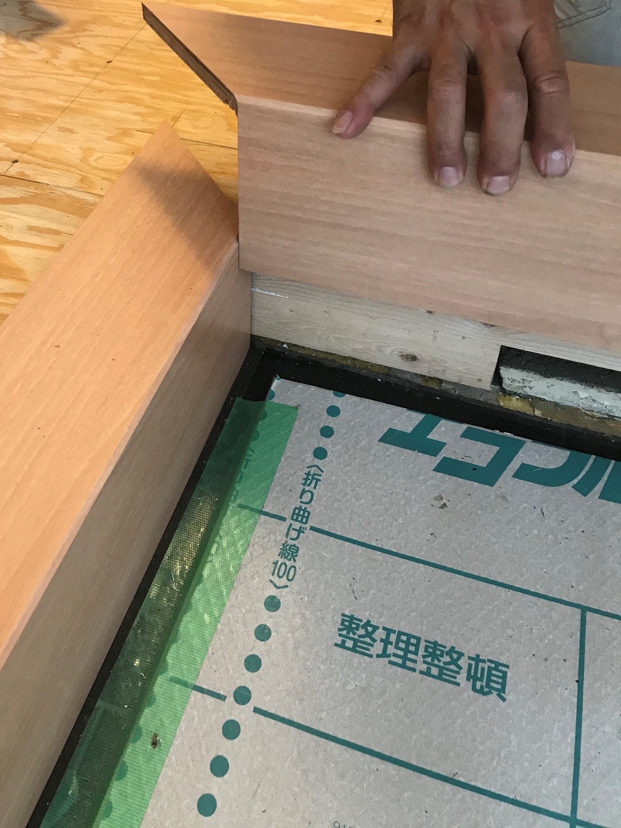 玄関を兼ねた主要な床なので2日間休憩なしと少しの残業で大工さんに頑張っていただきました。