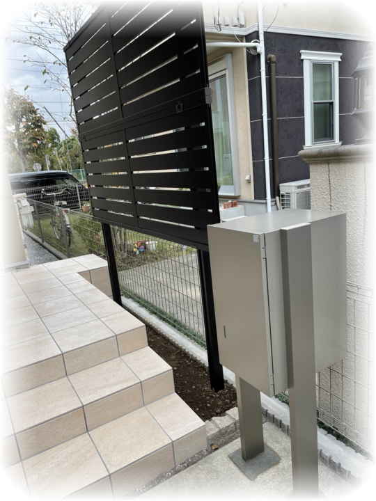 ウッドデッキ・オーニング(日よけ)設置工事、玄関ポーチ工事・玄関前フェンス・宅配ボックス設置工事、バルコニーテラス屋根設置工事のご依頼をいただきました。