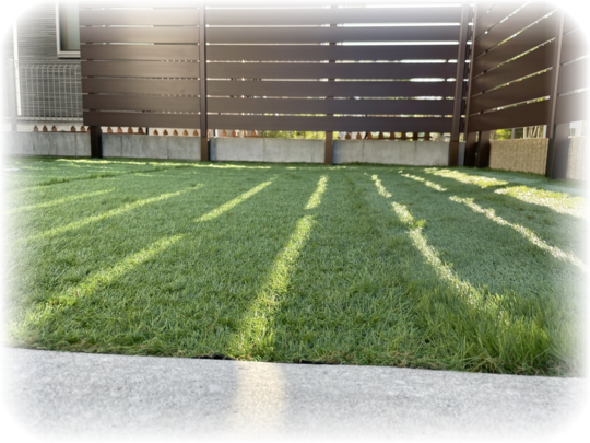 木目調フェンスを新設し、人工芝を敷きました。