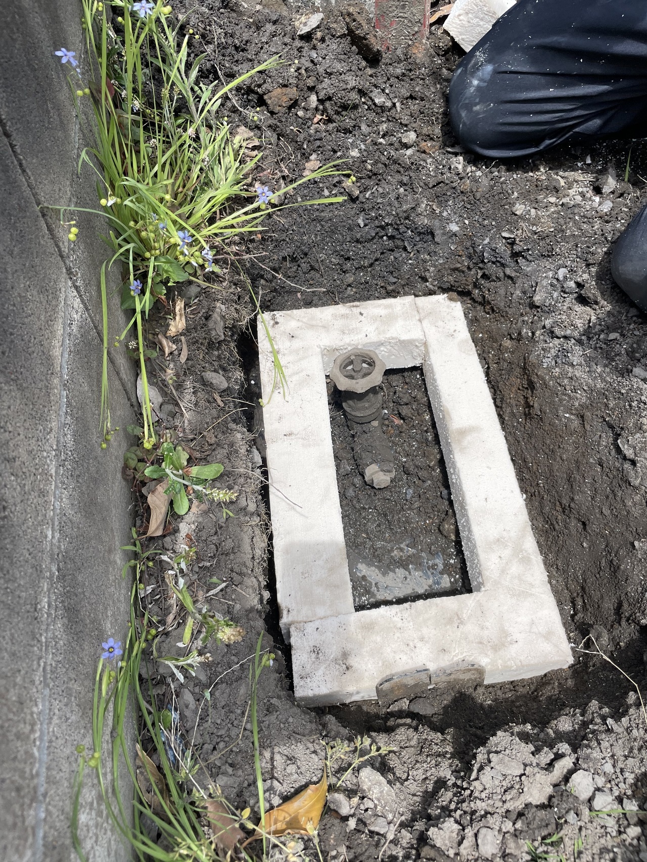 砂利の駐車場の水たまりがひどいとのことで、高低差をつけたコンクリートの駐車場にリフォームしました。
