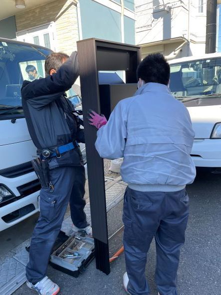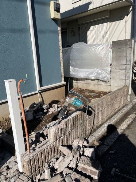 既存のブロック塀を撤去しコンクリートを施したバイク用駐輪場にしたい、またポストや表札などの機能を組み込むことが出来る機能門扉を設置したいとのご希望でした。
