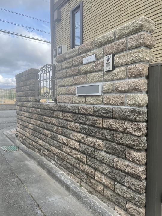 ※既存の煉瓦ブロックが廃盤で同じ色のものが入手不可能だったため、なるべく違和感の無いもので施行する旨ご理解頂いております。後日行う外壁の高圧洗浄で、より色味が近づく予定です。