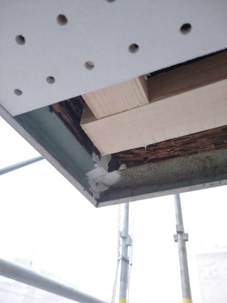 作業途中にバルコニー床の軋みが発覚し、白蟻被害の影響も考えられるため、今後の悪化を懸念し、ご相談のうえ追加で補修工事もおこなうことになりました。