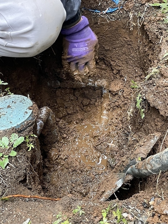 埋められた配管を掘り起こして調査。