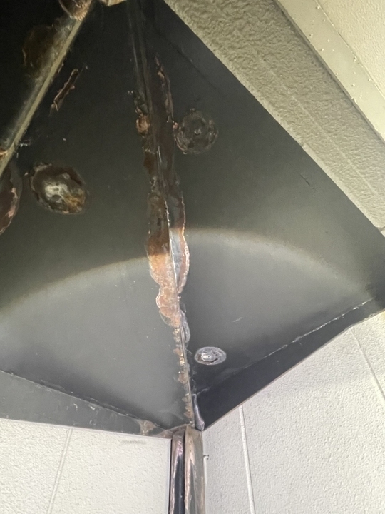 ご相談の鉄骨階段裏、雨垂れした部分、錆が目立ちました。
