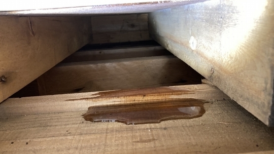 堆積した落ち葉により水の捌けが悪く、サッシの下より浸水となったようです。