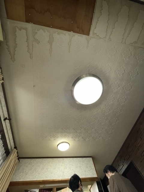 2階のリビングの窓側付近の天井に漏水のシミが出来ていました。