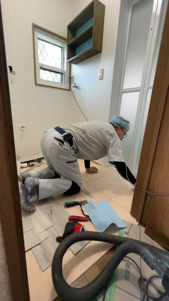 洗面化粧台を交換、クロスやクッションフロアも貼り替えました。