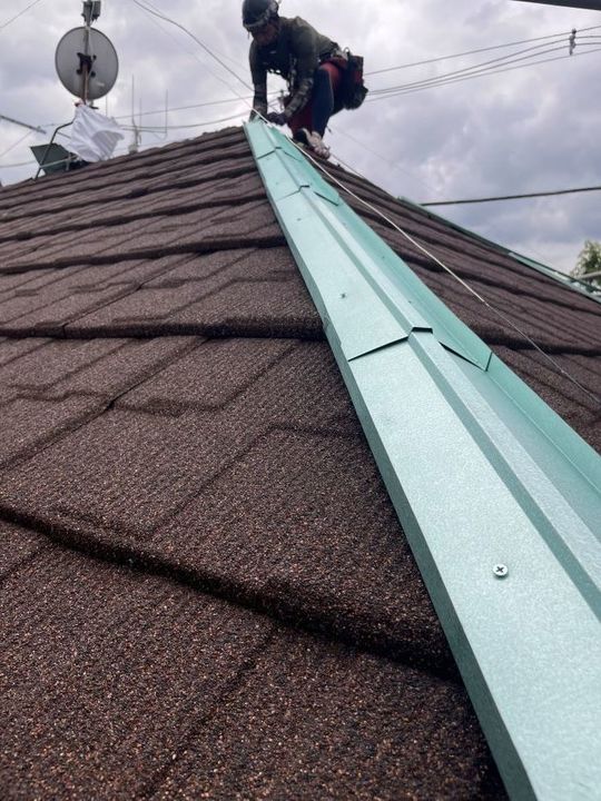 棟板金を取り付けていきます。