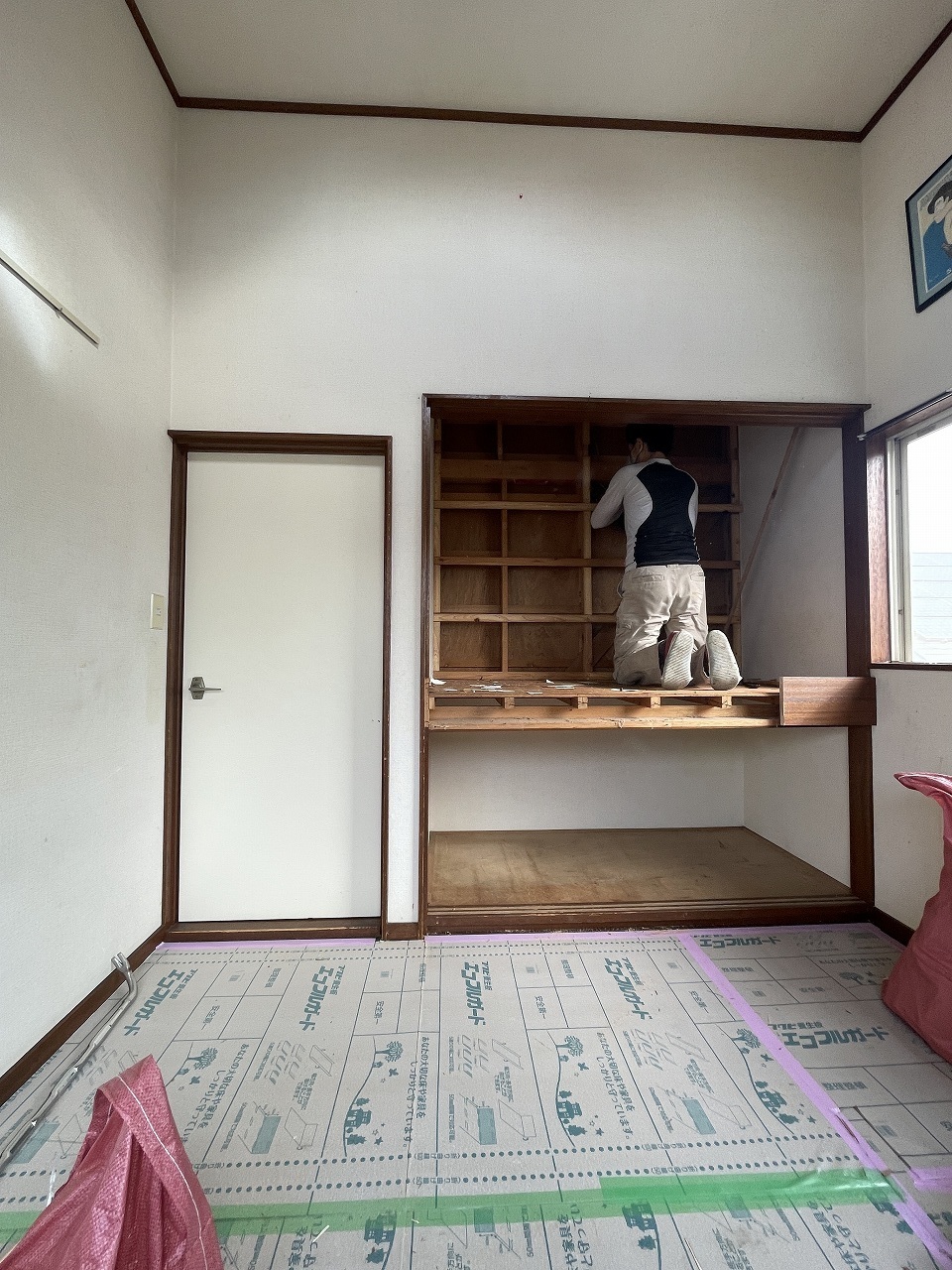 廊下にあったデッドスペースと隣接するお部屋の収納部をつなげて、お部屋を広々と使えるようにしたいとのご依頼がありました。