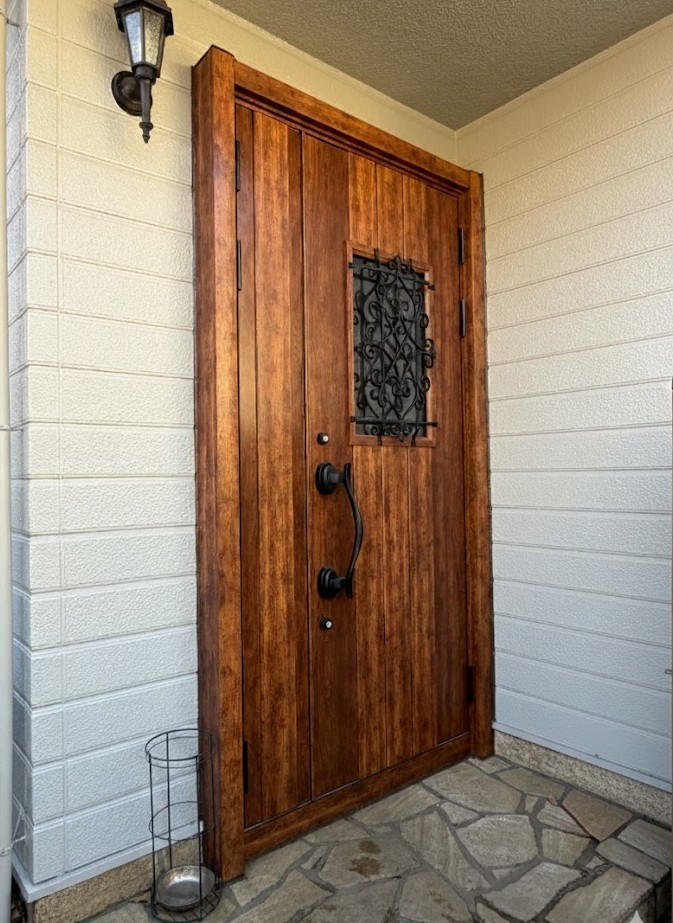 玄関ドアには、断熱性能と防犯性に優れたLIXIL「リシェント玄関ドア」を採用。既存のドア枠を活かした施工で工期を短縮しながら、外観の印象も一新しました。