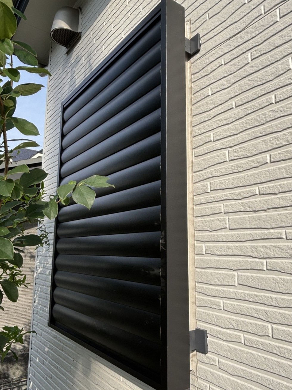 室内側のレバーで採光や通風を無段階に調整できるだけでなく、堅牢な構造で防犯性が格段に向上するのも大きなメリットです。ルーバーを閉じれば夜間も安心なプライバシー空間が完成し、外壁にも美しく馴染む仕上がりとなりました。
